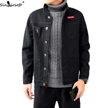 ג'ינס מעיל שחור הדפס מכתב מכתבים מכנסי ג'ינס מעילי רחוב זכר Chaqueta Hombre בגדי חורף סתיו חדשים בגדים חדשים