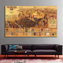 גודל A1 מפת הקיר מפת המונגולים ציור ריסוס בד HD עבודות יד לבית תפאורה