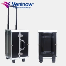 איפור מקצועי 2-in-1 איפור אלומיניום מקצועי מתגלגל עגלה עגלת אלומיניום תיבת קוסמטיקה יופי