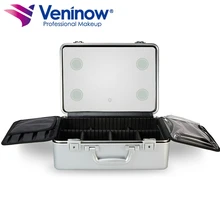 נרתיק איפור נסיעות אלומיניום קטן נייד איפור סטודיו רכבת יופי קוסמטי Led איפור נרתיק עם מראה אור