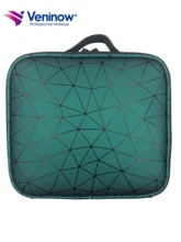 תיק נסיעות איפור עם חוצצים מתכווננים מארגן איפור מארגני רכבת לנשים תיקים קוסמטיים ניידים גיאומטרי ירוק