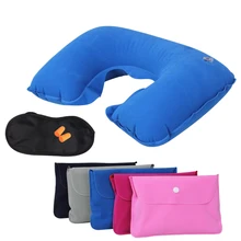 4in1 סט נסיעות כרית צוואר כרית צוואר מתנפחת בצורת U תיק כרית נייד + משקפי מגן ניידים + 2 אטמי אוזניים + מבט עיניים