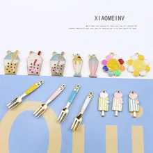 10 יחידות הנמכר ביותר טפטוף סגסוגת שמן תליון קטן וחמוד ארנב דגי טנק משקפיים עגילי בקבוק לבנות אביזרי תכשיטי Diy