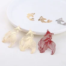 10 יחידות עגילי בעלי חיים בנות תכשיטים לאומיים רוח קוי דגי זהב מתקפלת מאוורר פרפר נחושת תליון חתיכת DIY עגיל