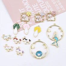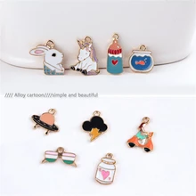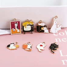 10 יחידות בסגנון קוריאני 2020 טיפת סגסוגת שמן כיף תליון ארנב חתול חמוד עגילי הצהרת תליון עגילי אביזרי חומר Diy ביצוע תכשיטים