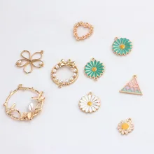 10 יחידות חומר קוריאני עגילי פרח שרף עגילי פרל אהבת עגילים תלויים סגסוגת תליון אביזרי תכשיטים Diy