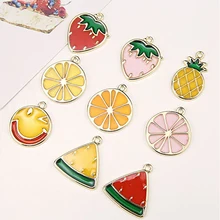 6 יחידות תכשיטי אופנה לנשים עגילי טיפות סגסוגת טיפות שמן תות פירות אבטיח לימון תליון חמוד Diy אביזרים בעבודת יד