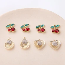 6 יחידות עגילי זירקון מצופה נחושת מצופה עגילי פרח תכשיטי כתר דובדבן קשת תכשיטים עגילי אופנה קוריאנים חומר