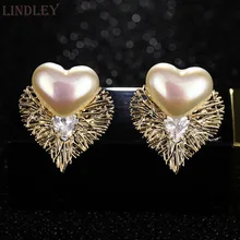 עגילי פנינת LINDLEY 2020 לנשים אור שמש פסיפס וינטג 'בצורת לב זירקון עגילי תכשיטים ואביזרי חתונה