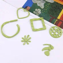 6 יחידות 2020 קוריאני אופנה טריים אבוקדו סגסוגת ירוקה צבע ריסוס עלים עגולים עגילי הצהרת עגילי הצהרה בצורת c