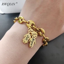 צמיד שרשרות קישור שעועית קפה התאמה אישית של נירוסטה תליון ילדה שם צמידים צמידים Hiphop תכשיטים לגברים נשים 2020
