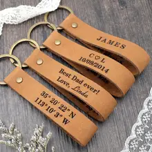 מחזיק מפתחות עור בהתאמה אישית, מחזיק מפתחות בהתאמה אישית, חרוט בכל מחזיק מפתחות טקסט, טבעת מפתח עור, מתנת גברים, מתנת יום האב
