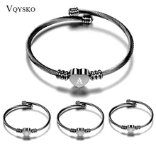 צמידי לב קסם ראשוני אופנה נירוסטה שחורה 26 אותיות צמיד שרוול אלפבית תכשיטים לנשים