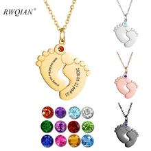 יום הולדת קריסטל שרשרת שם מותאם אישית תליון כף רגל נירוסטה תליון שרשראות קסם קולר למתנות למשפחה
