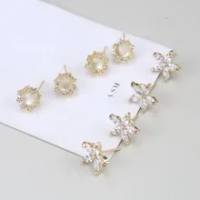 2 יחידות בסגנון קוריאני 2020 עגילי זירקון מצופה זהב נחושת עגילי חרוזים עגילי אביזרי תכשיטים לבנות Diy