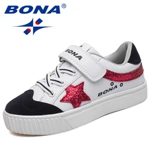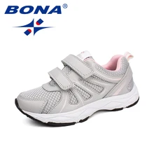 BONA סגנון אופנתי הגעה חדשה לילדים נעליים מזדמנים נעלי סינטטיות לנערות נעלי ריצה וו & לולאת נעלי ספורט של בנות