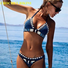 CROCHET BIKINI נשים סקסיות ציצית ביקיני למעלה Boho ביץ 'בגדי ים פרינג' חזייה הלטר חולצות Camisoles בגד ים פגז רוח