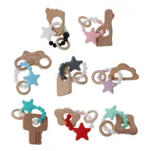 DIY צעצוע לתינוק לתינוק שרשרת סיעוד צמיד סיליקון חרוזי סיליקון טבעת בקיעת שיניים מעץ
