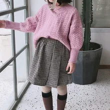 חצאית משובצת בנות שמלות ילדים בגדי תינוקות חורף Kpop קפלים חמים צמר עבה אלגנטי אופנתי ללבוש Autumm