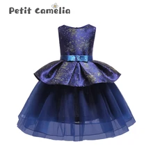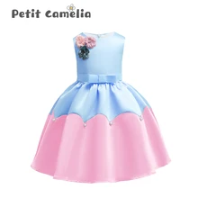2020 שמלת רקמת ילדים חדשים שמלת פרח רשת נסיכה חצאית ארוכה חצאית פרח אלגנטית מסיבת חתונת שמלת נסיכת ילדות