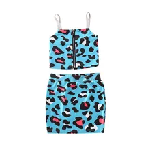 סטים לבגדי בנות 2020 סטים של בגדי קיץ חדשים בגדי ילדים חולצת טריקו ללא שרוולים עם הדפסים מנומרים + חצאיות מיני 2 יחידות חליפות 1-6Y