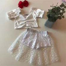 בגדי קיץ לילדים בנות חולצות טריקו חולצות יבול + נקודות פולקה הדפסות חצאיות תחרה של מאקס בנות תלבושות למסיבת חוף הים