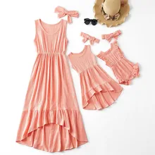 שמלת קיץ משפחתית ללא שרוולים 2020 בת בת התאמה לבנות תלבושות בנות בת שמלות אמא ובת בגדים תואמים