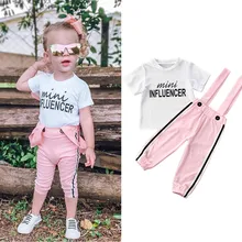 פעוטות תינוקות פעוטות תלבושות קיץ בגדי תינוקות סטים חולצות הדפסת מכתב חולצות מכנסי כתפנית בגדי תלבושת מזדמנים