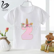 יום הולדת שמח מספר 1-9 חולצת טריקו לילדים חד קרן ילדים יום הולדת שמח הדפסת קריקטורה חולצת טריקו לילדים חולצות מצחיקות בגדי תינוקות