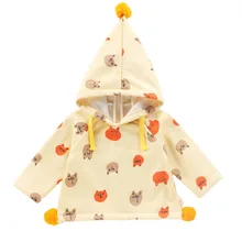 פעוטות חורף בגדי ילדים מעיל חם אופנה שרוולים ארוכים קפוצ 'ון חמוד מודפס תלבושת רכה ילדים קטנים