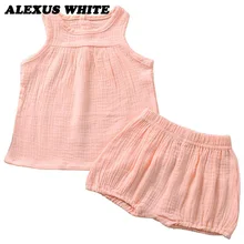 כותנה פשתן כותנה חליפות בנות חליפות מכנסיים קצרים ללא שרוולים קיץ 2 יחידות חליפת ילדי סט 2017 ביגוד לילדים בובו ביבי פעוט 0-5T