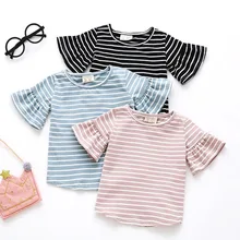 שרוול פרפר חולצה מזדמן חולצה עם צווארון פסים עם צווארון קיץ ילדה ילדים בגדי ילדים חולצות טריקו חולצות פעוטות חמודים פעוטות תינוק 0-4Y