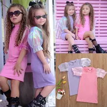 שמלות קיץ לילדים תינוקות בנות תינוקות טלאים שרוול טלאים סרוגים שמלת אונליין קיץ שמלות חג מזדמנים לבנות