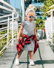 ילדי שמלה משובצת כחולה קשת שמלות נסיכת תינוק שמלות ילדים לבנות בגדי ילדים מזדמנים פעוטות תלבושות קיץ דברים זולים