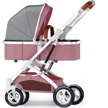 עגלת תינוקות יוקרתית קלה 3 ב 1 עגלת נוף גבוהה ניידת הפיכה עגלת אמא חמה ורודה עגלת טיולון