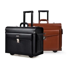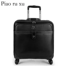 Piaoruxu גברים בגודל 16/20 אינץ '100% תיקי עגלות מזוודות עור אמיתיות עור אמיתיות על גלגלים