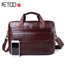 AETOO תיק עור עור חום עור אמיתי עור אמיתי תיק עור מחשב נייד עור תיקי תיק מחשב נייד עור פרה גברים