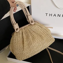 שקיות ראטאן לנשים 2020 תיק כתף חוף תיק כתף חוף בוהאין צורת קש שקיות Crossbody