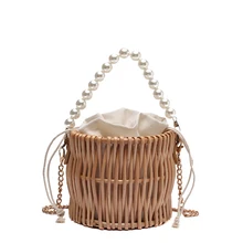 תיק כתף פרל נשים תיקי קש קש קש דלי עם תיק Crossbody ארנק מיני תיקים לנשים שרוך