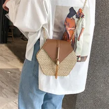 נשים נסיעות חדשות קש קש קש שקיות שליח כתף שרשרת מעצבי שקיות משושה מיני תיקים קטנים קיץ נשים