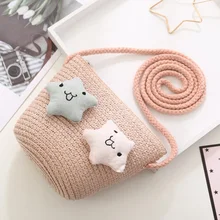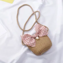 דשא ראטאן סריגה ילד מיני מטבע קש ארנק כתף crossbody תיק חוף ילדים כסף כיס Carteira בולסו בולסה לילדות