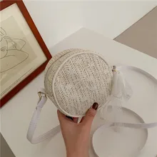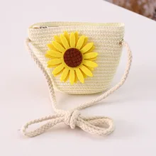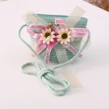 דשא ראטאן סריגה ילד מיני קש מטבע חמוד כתף crossbody תיק חוף תיק כסף קרטירה בולסו בולסה לבנות