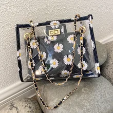 הדפסים פרחוניים של שקיות שקיות שקיות נשים שקיות שרשרות תיק כתף ג'לי נעילת Crossbody תיק Pvc שקית קוסמטית שקופה HPS894