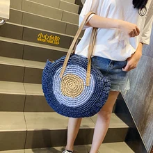 שקיות מזדמנים חופשת קיץ בוהמית עגולות קש חוף תיק חוף בציר תיק כתף ארוג בעבודת יד מעגל רפיה שקיות ראטאן