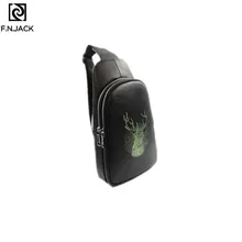 FNJACK מעצב פאני חזה תיק עור אמיתי אופנתי לגברים מותן תיק כתף בודדת חגורות שחורות הדפסי בעלי החיים