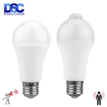 LED PIR חיישן תנועה 5W 7W 9W 12W 12W מנורת חיישן צליל AC 110V 220V אוטומטי חכם Led PIR אינפרא אדום גוף E27 הנורה