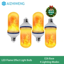 נורת להבה (4 מארז) | נורות LED של אפקט להבה עם הפוכות להבות פו מהבהבות מציאותיות | 5 ואט 150 לום