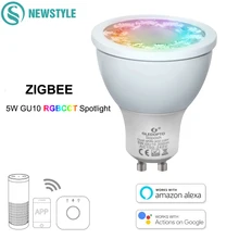 ZIGBEE RGBCCT 5W GU10 LED זרקור LED ניתן לשלוט בקרת קולות חכמות נורות LED נורות AC100-240V LED APP בקר עם אמזון הד