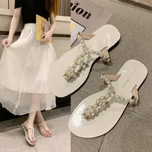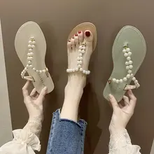 2020 קיץ סנדלי בוהן קליפ פנינה חדשים האופנה תחתונה שטוחה ללבוש סנדלי פיות רוח סנדלי חוף ונעלי בית Z930