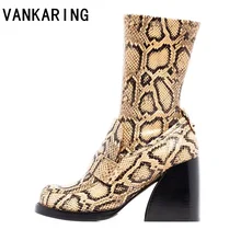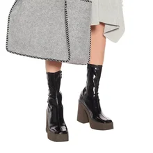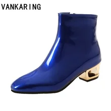 VANKARING מגפי קרסול עור מעילי פטנטים לנשים רוכסנים סתיו חורף עקבים אמצע עקבים נעלי פלטפורמת נשים גומי